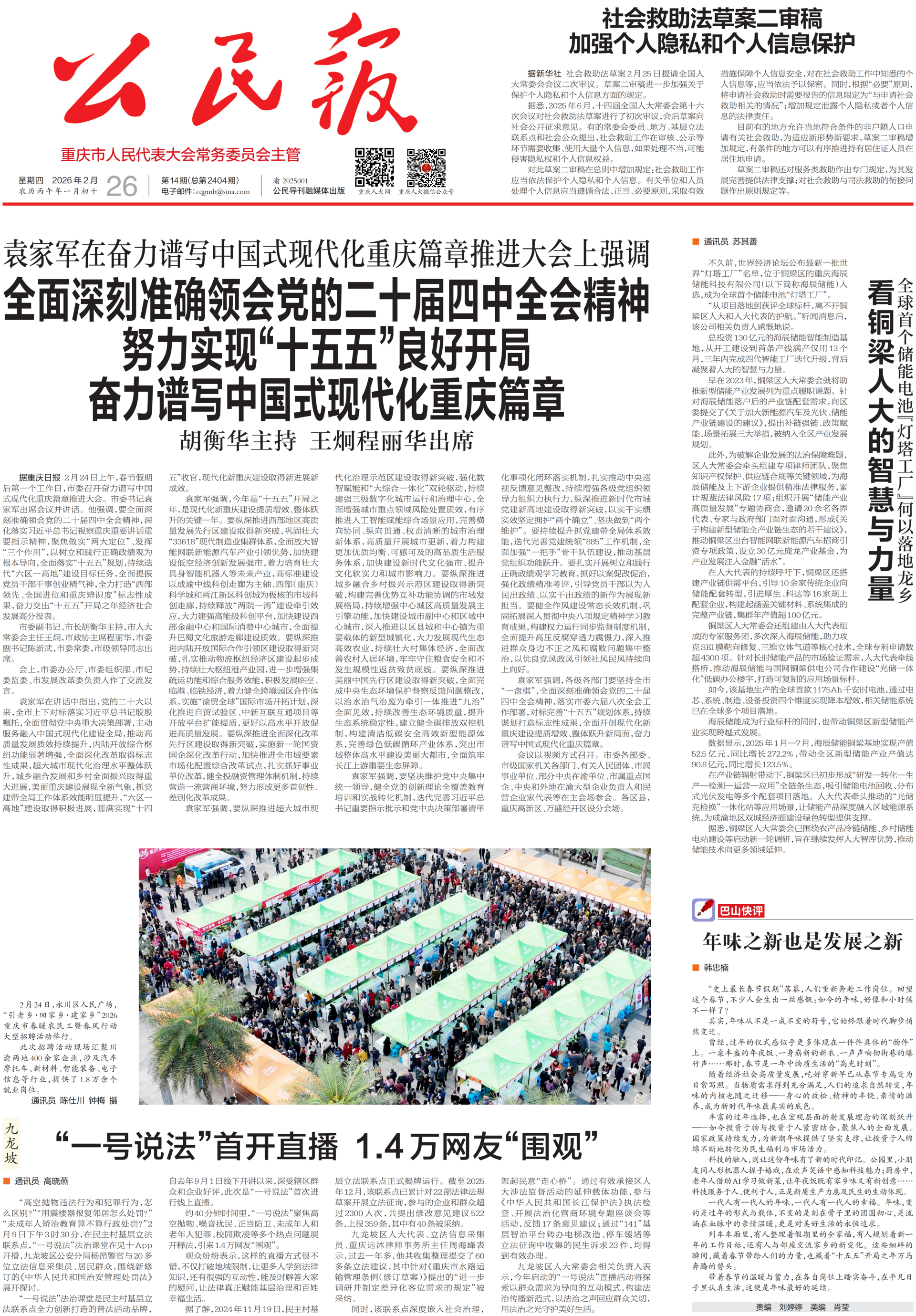 在渝全国人大代表集中研读讨论生态环境法典草案、民族团结进步促进法草案、国家发展规划法草案