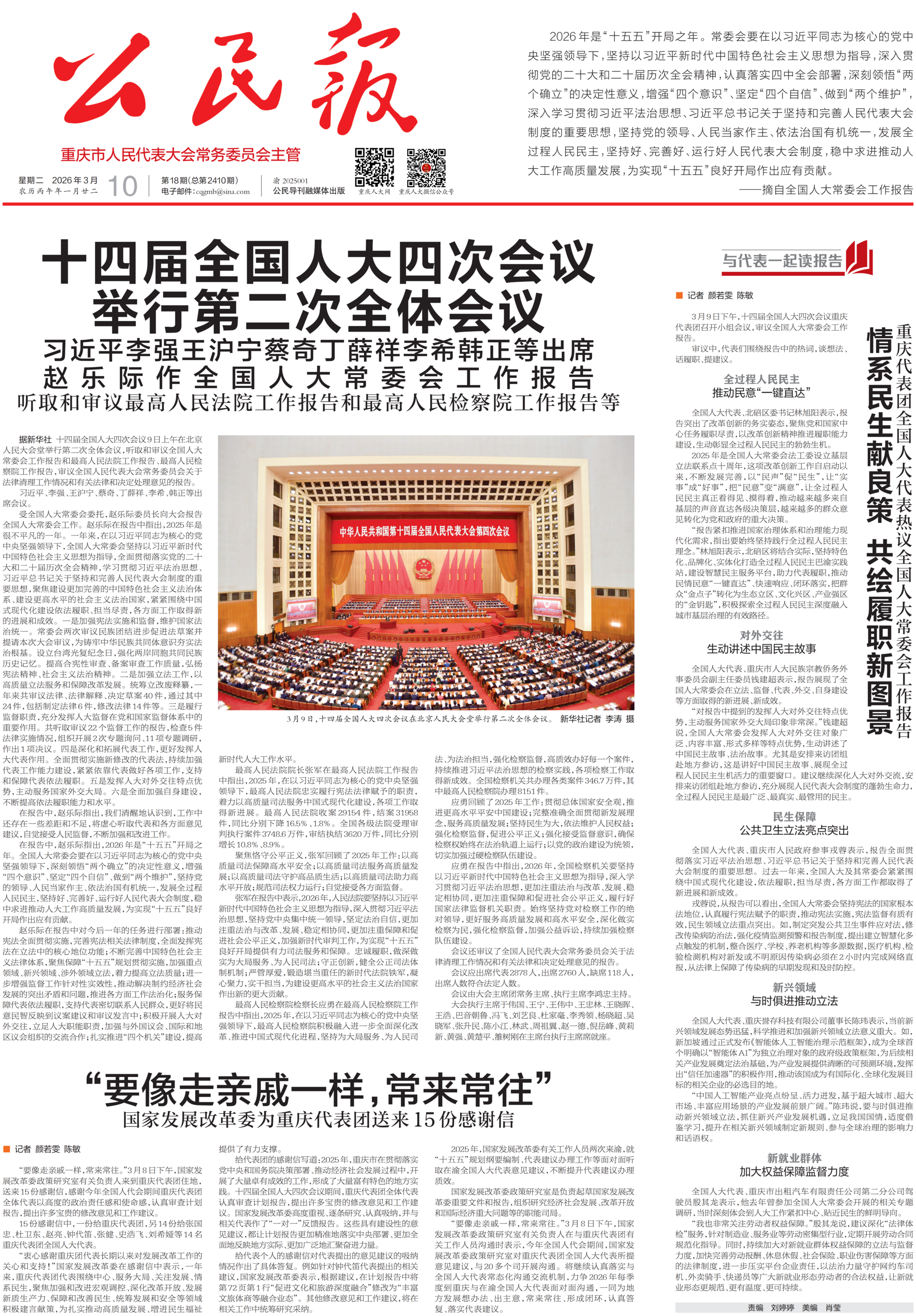 情系民生献良策 共绘履职新图景——重庆代表团全国人大代表热议全国人大常委会工作报告