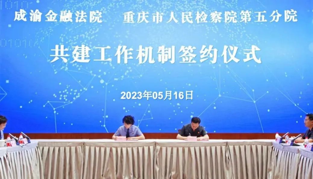 2023年5月16日,重庆市检察院第五分院与成渝金融法院联合会签《共建工作机制框架协议》。