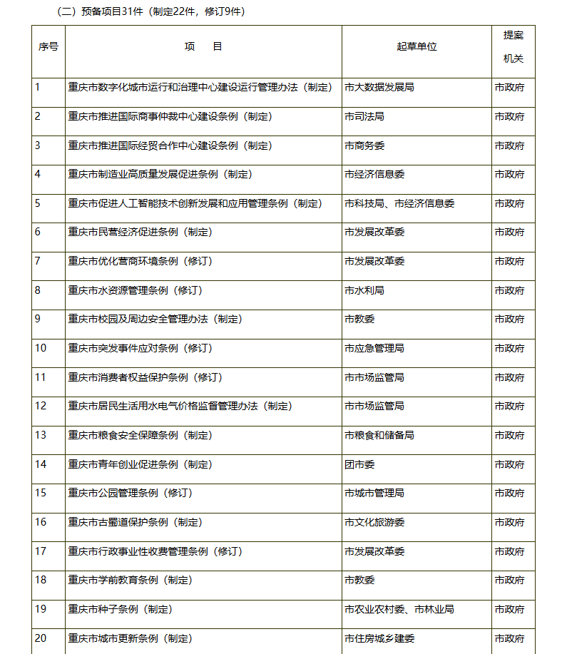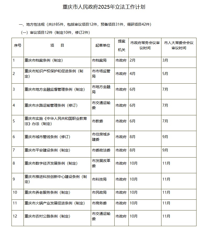 关于印发《重庆市人民政府2025年立法工作计划》的通知