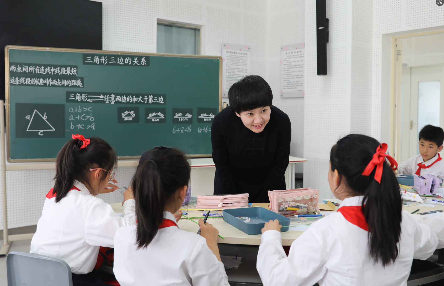 全国人大代表、重庆市九龙坡区谢家湾学校党委书记刘希娅在课堂上和学生交流。受访者供图